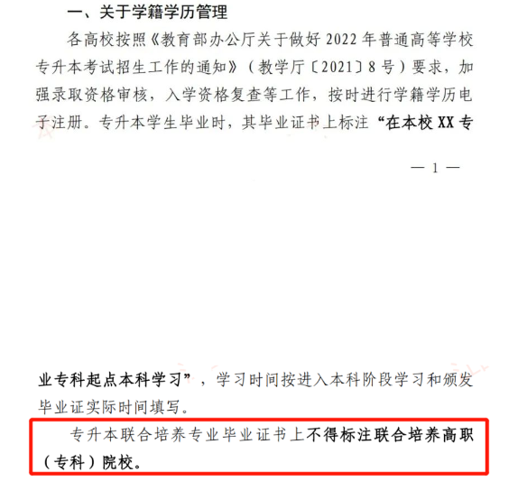 唯一区别:升本后的就读地点有所不同,联合培养录取的同学,在高职院校就读;非联合培养录取的同学,在对应的本科院校就读。