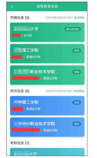 专升本、考研等升学后,学信网学籍更新,最高学籍会显示在最上面: