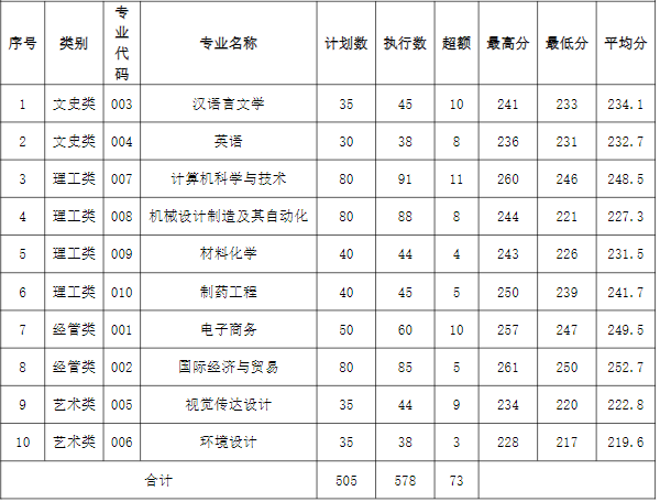 2022年湖州学院专升本录取分数线
