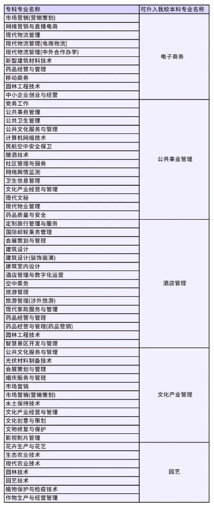 2024年四川师范大学专升本招生专业共有11个,分别我为汉语言文学、学前教育、特殊教育、体育教育、小学教育、英语、电子商务、公共事业管理、酒店管理、文化产业管理、园艺。