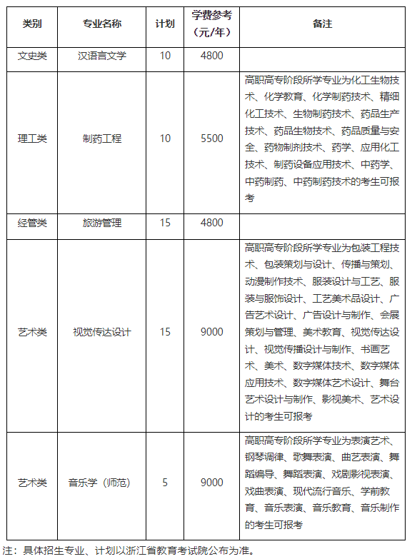 第十三条 学校将根据浙江省教育考试院提供的名单,在本科招生网(http://zsw.zjhu.edu.cn/)上发布综合测试公告,请报名考生随时关注,并及时打印准考证。汉语言文学、制药工程、旅游管理综合测试形式为笔试,视觉传达设计、音乐学(师范)综合测试形式为面试,测试内容为专业素养、综合素质、基础知识。