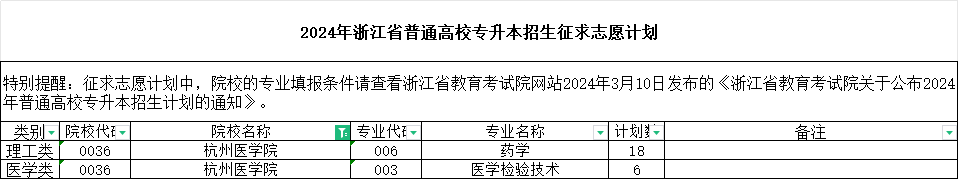 2024年杭州医学院专升本征求志愿计划公布!24人,其中药学18人,医学检验技术6人,内容如下:
