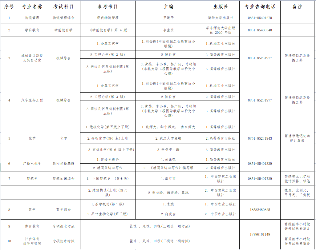 贵阳学院2024年普通专升本拟招生10个专业,招生范围、考试科目及参考书目如下: