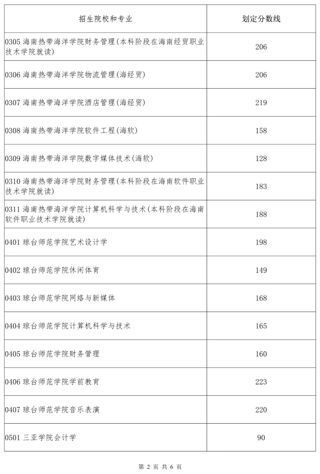2023年海南专升本录取分数线已公布!具体划定录取分数线方式、确认录取资格方式、征集志愿填报安排如下,有意补报征集志愿的考生须于6月2日-3日登录海南省考试局网站系统填报征集志愿。各招生专业分数线请参考下表。