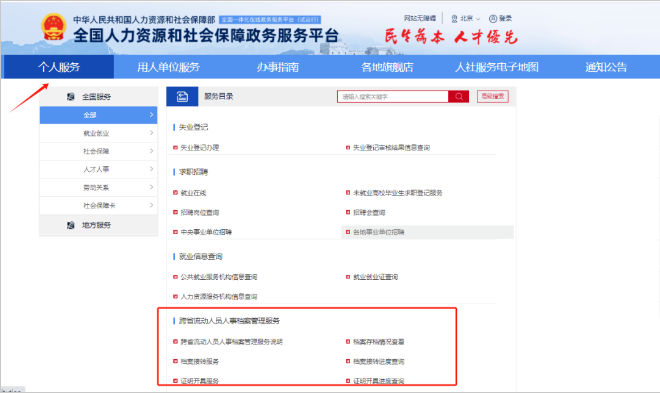 往届生如果不知道自己的档案在哪里的同学,登录“全国人力资源和社会保障服务平台”,可以查询自己的档案去向。