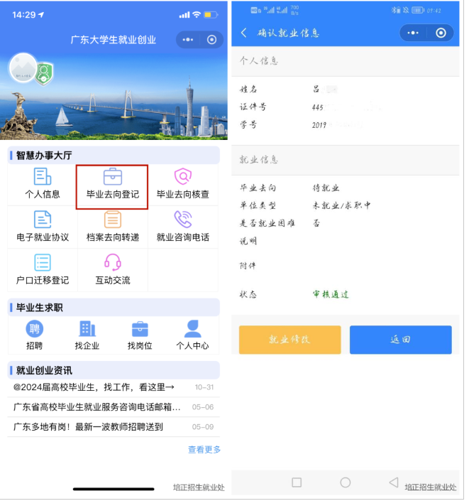 应届毕业生可以通过“广东大学生就业创业”小程序进行查询和改派,提交审核后,改派通过,你的档案就会直接派送到本科院校。