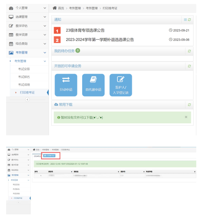 3.登录系统后,找到“考务管理-打印准考证”菜单,点击进入,即可看到“打印准考证”的字样,然后点击操作,即可打印。