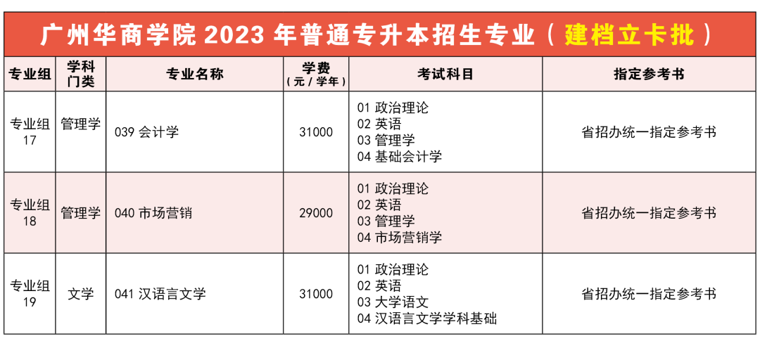 2023年广州华商学院普通专升本招生简章介绍了2023年专升本招生专业、学费、专业报考要求、考试科目费用以及缴费方式等内容。